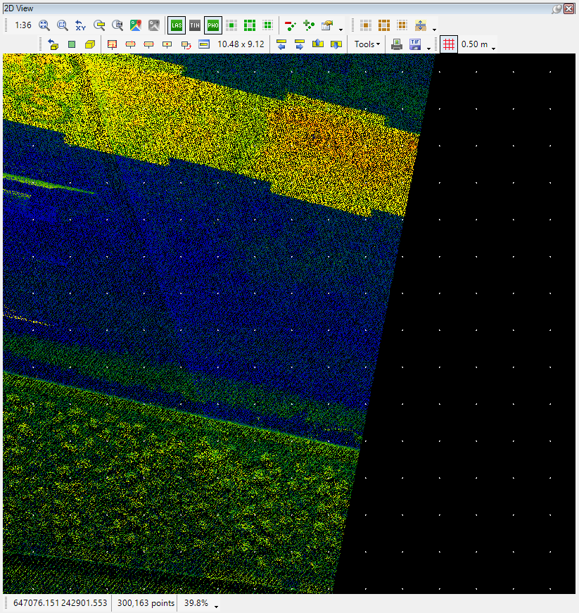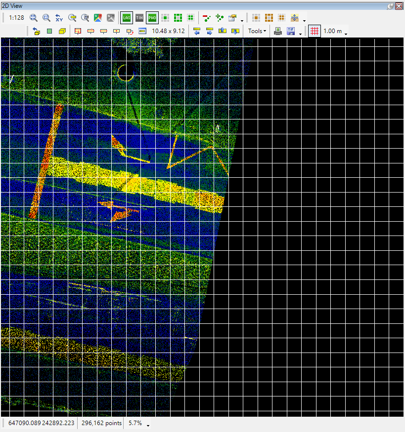 The grid is visible only in the 2D view, and the default display style is ‘point' - the grid intersection points are represented as points.